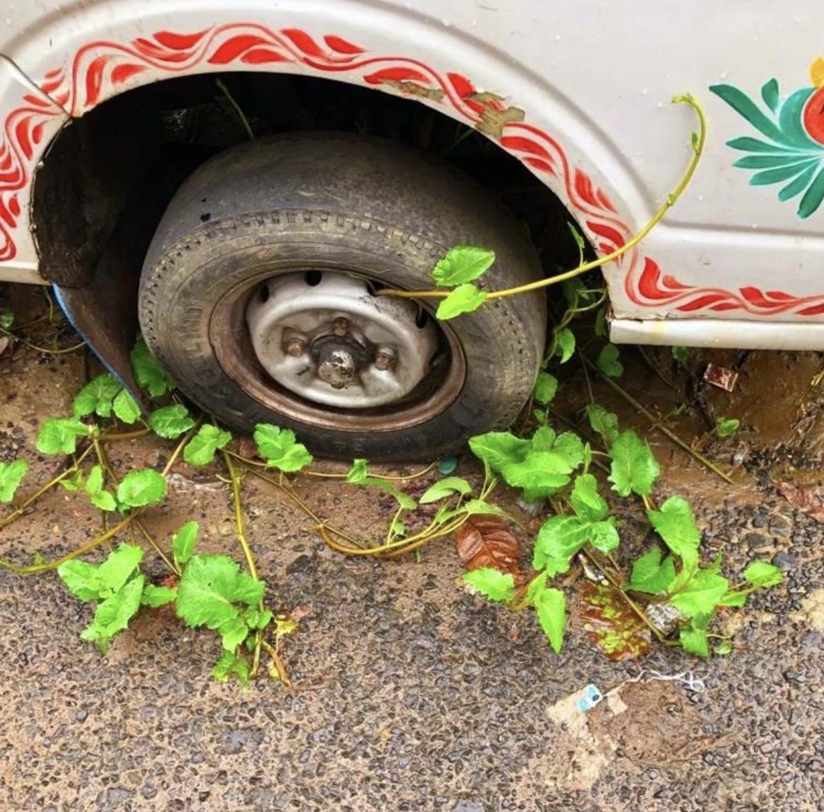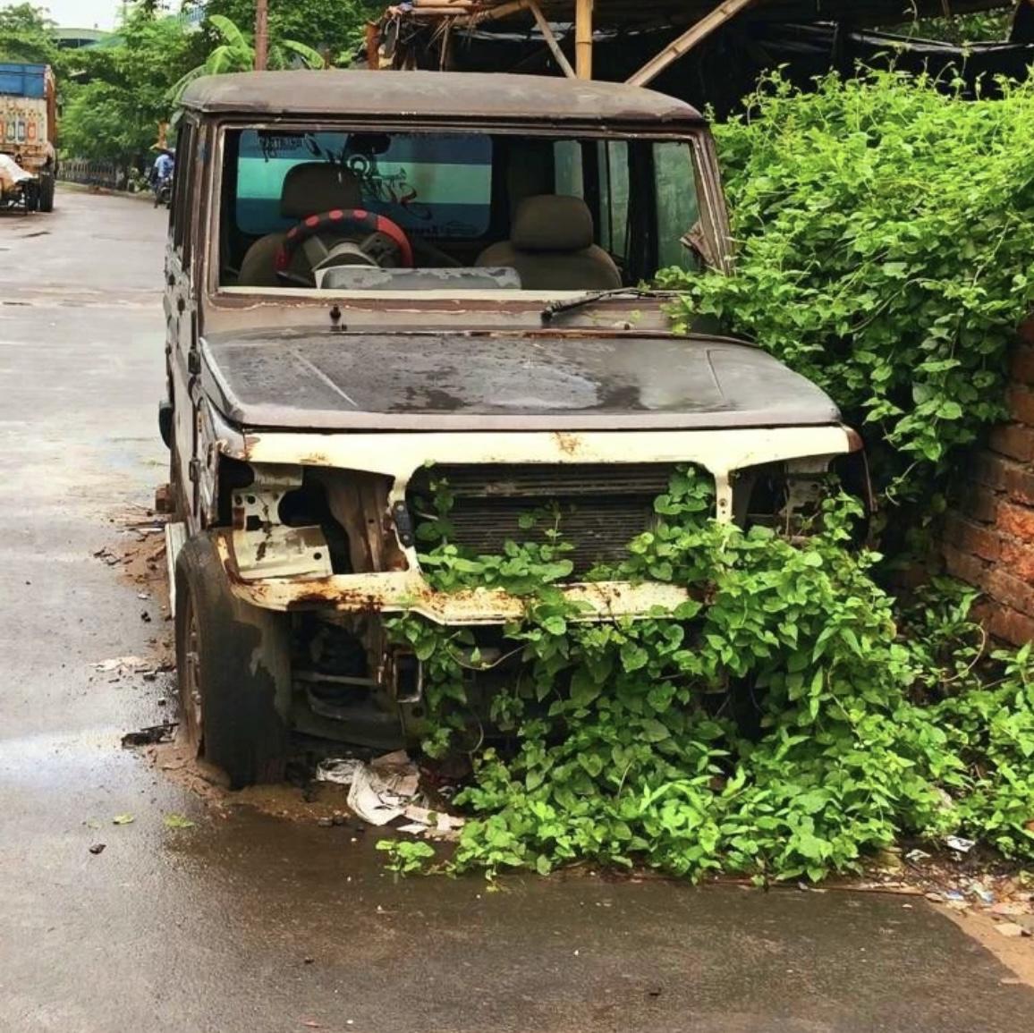 Spotted these abandoned vehicles on my usual morning walking route and felt they deserved a dignified goodbye from their owner. However, there too the creepers took charge and buried the unsightly metallic skeleton in a natural green cover.