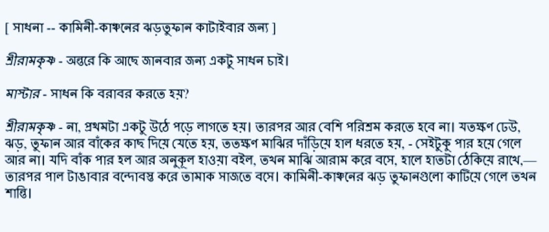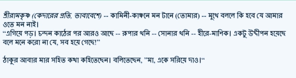 শ্রীরামকৃষ্ণ কাম-কাঞ্চন ত্যাগের প্রয়োজনীয়তার উপর জোর দিতে ভালোবাসতেন । শ্রীম (মহেন্দ্রনাথ গুপ্ত; মাস্টার) কথিত শ্রীশ্রীরামকৃষ্ণ কথামৃত-এ আমরা এটির অনেক উল্লেখ পাই । উদাহরণস্বরূপ, লেখাটি থেকে কিছু অংশ এখানে উদ্ধৃত করা হচ্ছে ।