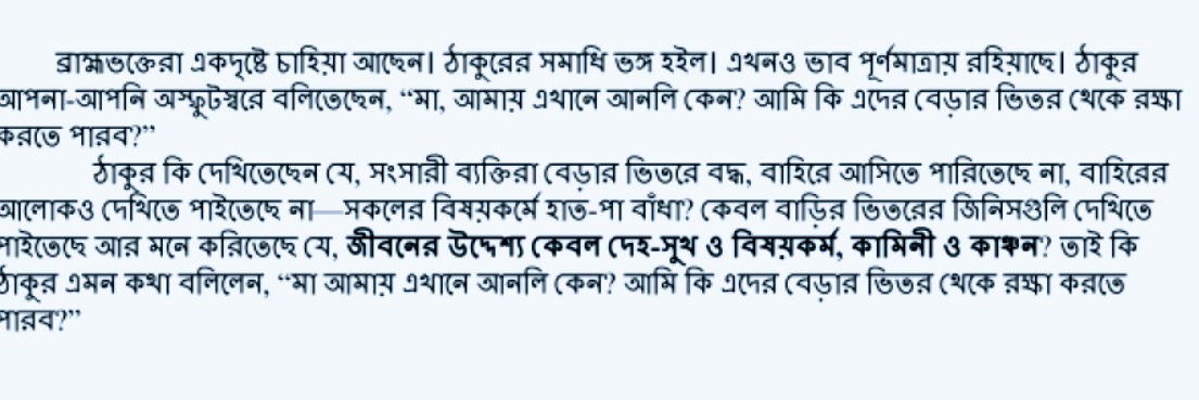 আমাদের ব্যক্তিগত সত্তার মুক্তির জন্য এবং পৃথিবীর সকলের মঙ্গলের জন্য ।